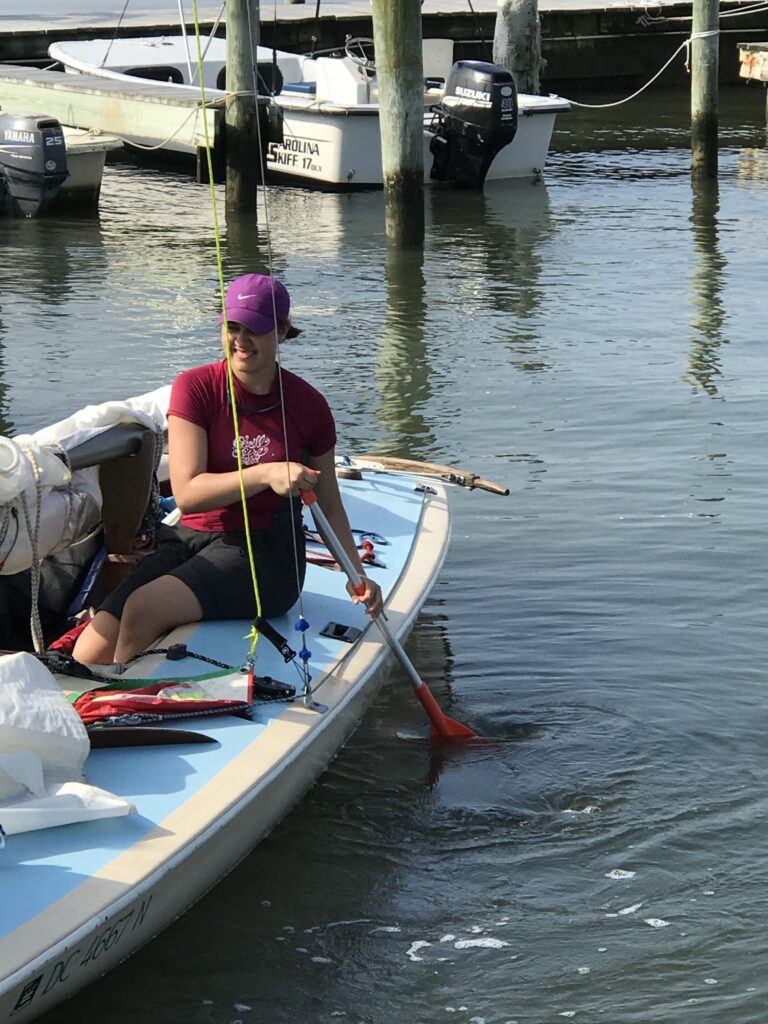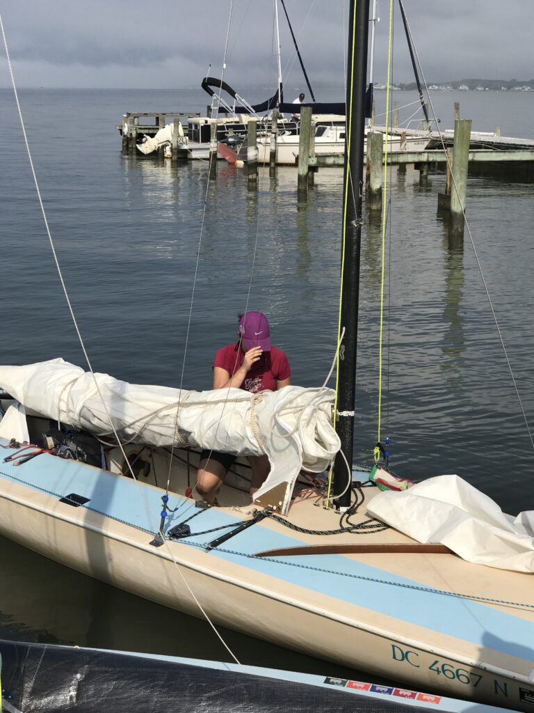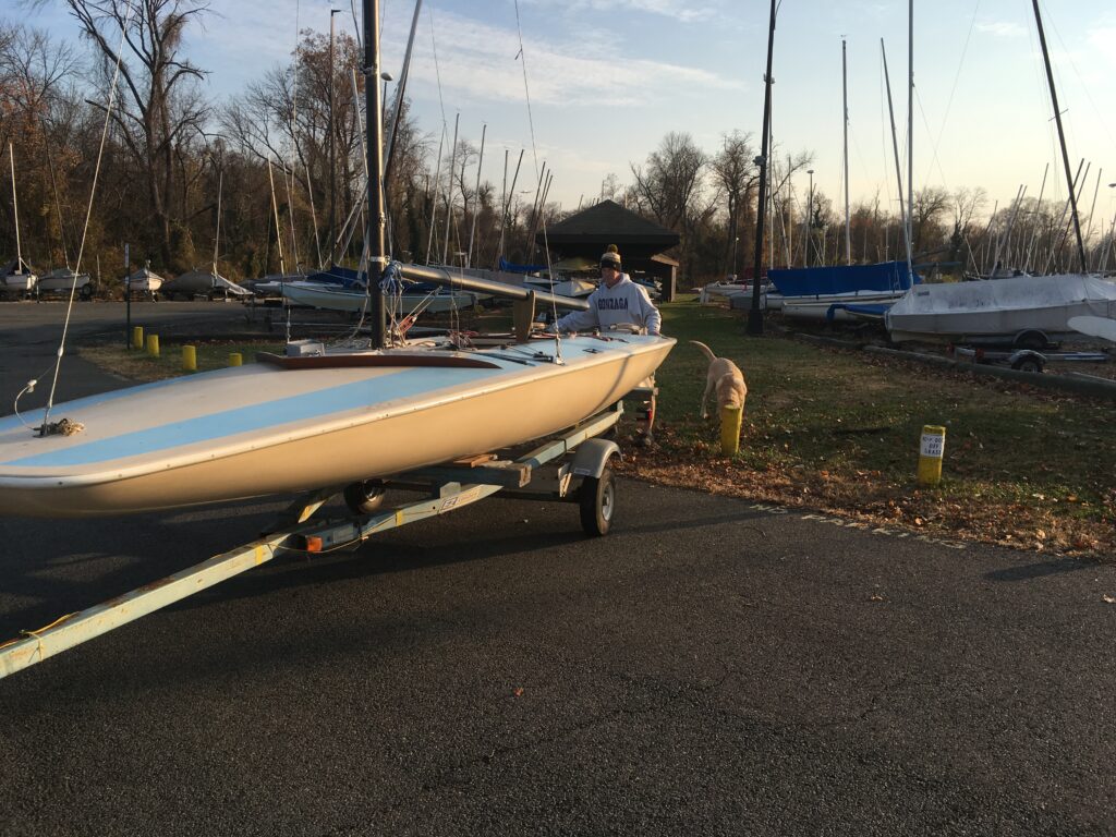 Most of the controls are routed to the skipper, which allows for rapid fine tuning and eases responsibilities of the crew. Both the trailer and boat are titled (VA and DC respectively) and are currently located at the Washington Sailing Marina, Daingerfield Island, just south of Washington DC. Trailer could use hubs serviced prior to extensive on road use.